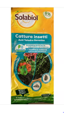 La combinazione del colore verde e del potere attrattivo dei feromoni rendono la trappola SOLABIOL un ottimo strumento per il monitoraggio degli insetti nocivi nelle colture di geranio.