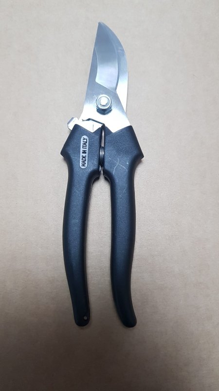 Manici rivestiti antiscivolo, con fermo di chiusura. Per vigna.