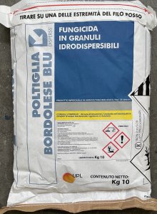 POLTIGLIA BORDOLESE DISPERSS BLU mantiene tutte le peculiarità tipiche della ® Brochantite e della formulazione DISPERSS . Il caratteristico colore blu è ottenuto con l'aggiunta di un complesso ferrico che coadiuva l'azione fungicida e stimola la produzione di clorofilla nelle foglie.