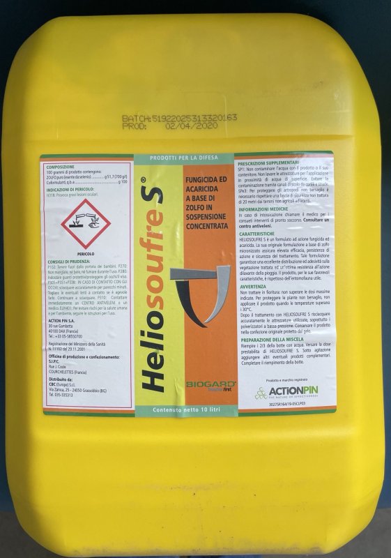Heliosoufre S® è un fungicida a base di zolfo bagnabile micronizzato,
