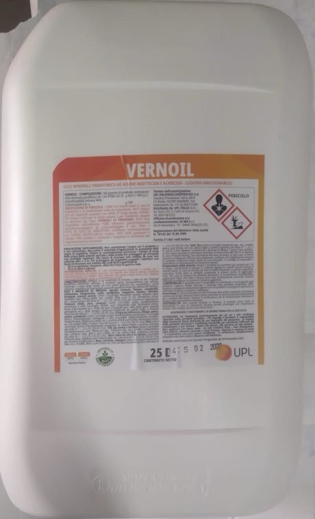 VERNOIL è un insetticida di contatto a base di olio minerale paraffinico ELF altamente raffinato. Il prodotto agisce essenzialmente per asfissia, coprendo il corpo degli insetti con una sottile pellicola che penetrando nei loro canali tracheali, che vengono perciò occlusi, impedisce loro la respirazione e ne causa quindi la morte per asfissia. VERNOIL è efficace contro le cocciniglie e le uova degli acari e presenta inoltre un’azione ovicida ed antischiusura, come pure un’azione repellente nei confronti di alcuni insetti masticatori. Il prodotto trova impiego su colture arboree ed erbacee in piena vegetazione sia in pieno campo che in serra.